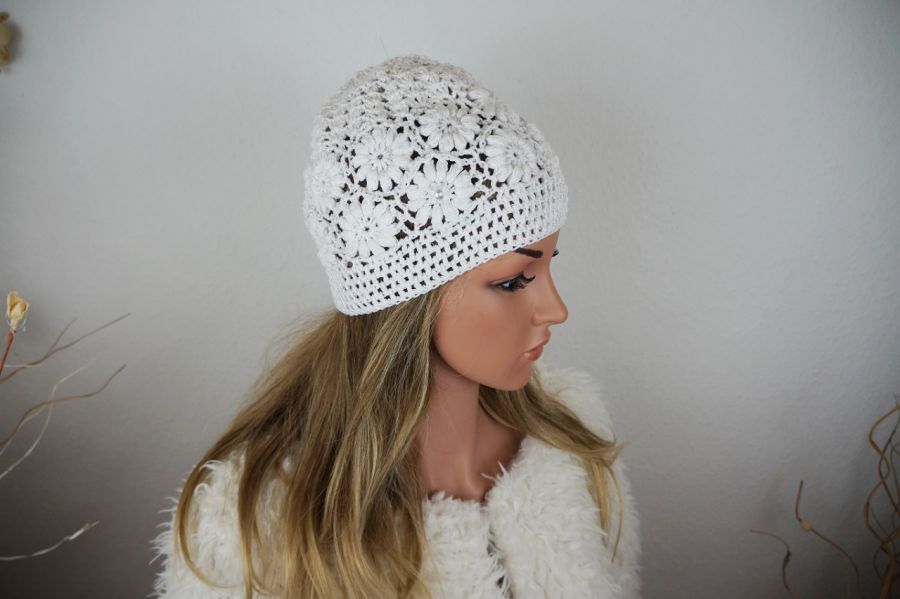 Nazwa produktu: czapka ręcznie robiona ecru