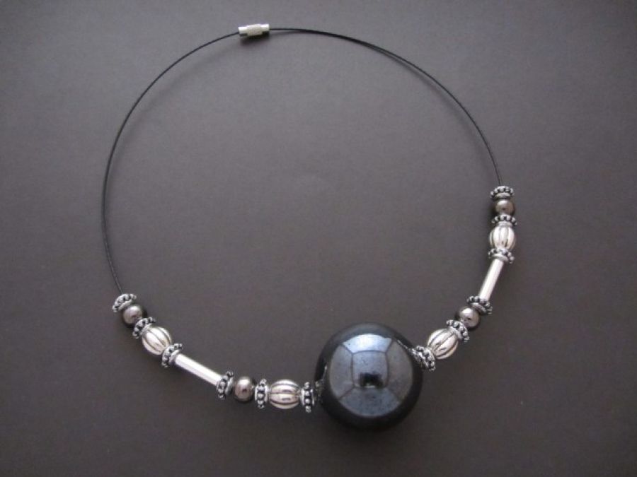 Elegancka kolia z ceramiczną kulą o wielkości 32mm, w kolorze czarnym.
