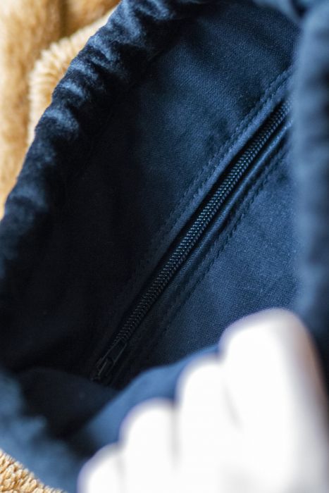 Środek torebki wykończony jest bawełnianą podszewką.