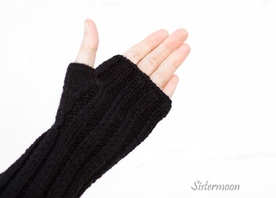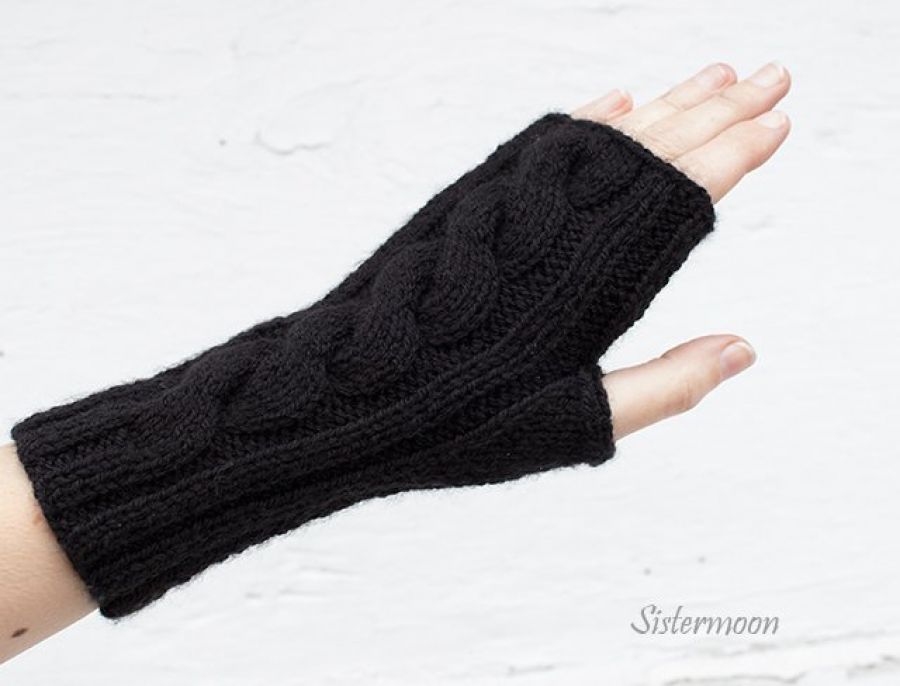 Krótkie czarne mitenki, wykonane z wysokiej jakości niemechacącego akrylu. Ciepłe, miłe w dotyku, niegryzące.