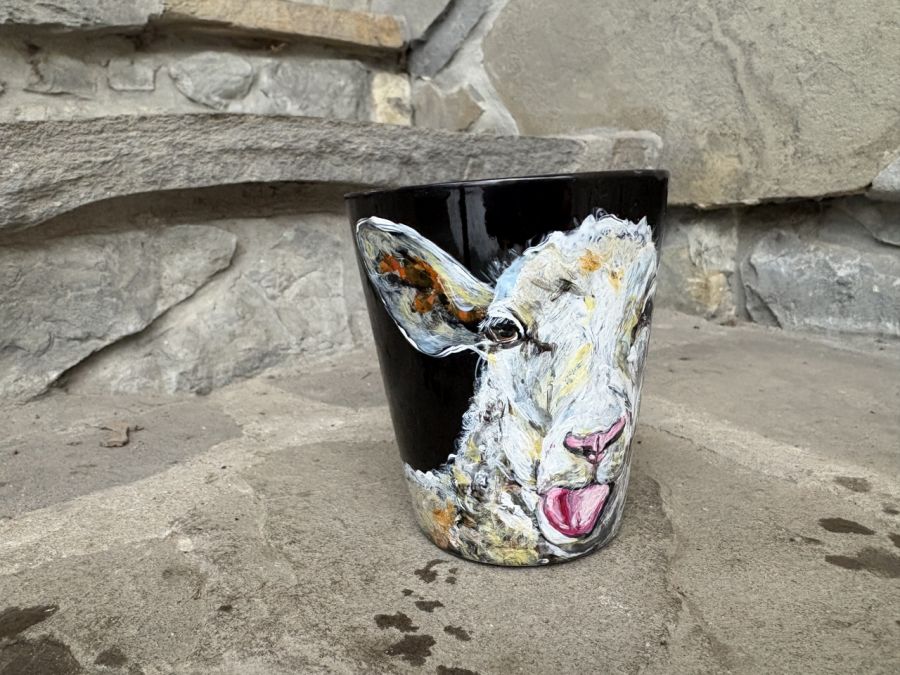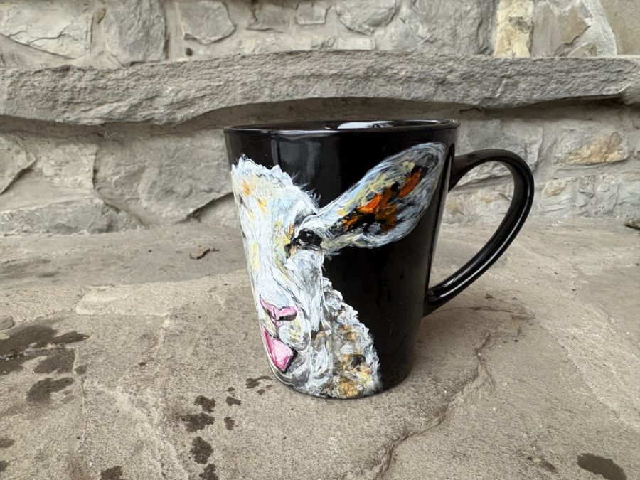 Zadaj pytanie dotyczące produktu: Czarny, porcelanowy kubek ręcznie malowany Redyk