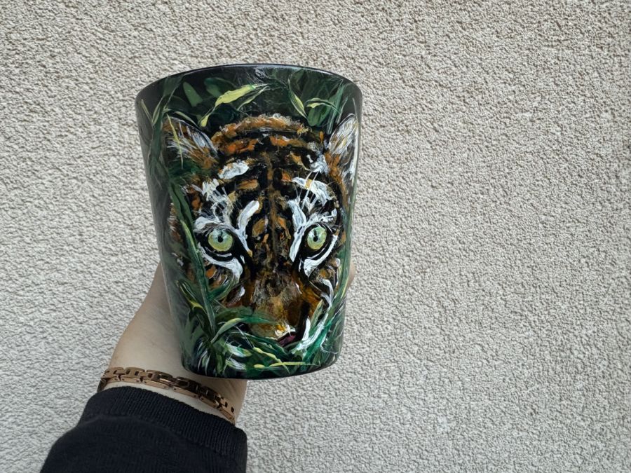 Zadaj pytanie dotyczące produktu: Czarny, porcelanowy kubek Tygrys w trawie