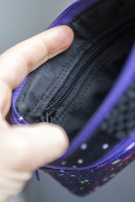 Idealny na karty płatnicze oraz pieniądze. Zapinany na suwak, z przodu kieszonka na drobne, w środku bawełniana podszewka i kieszonka na suwak.