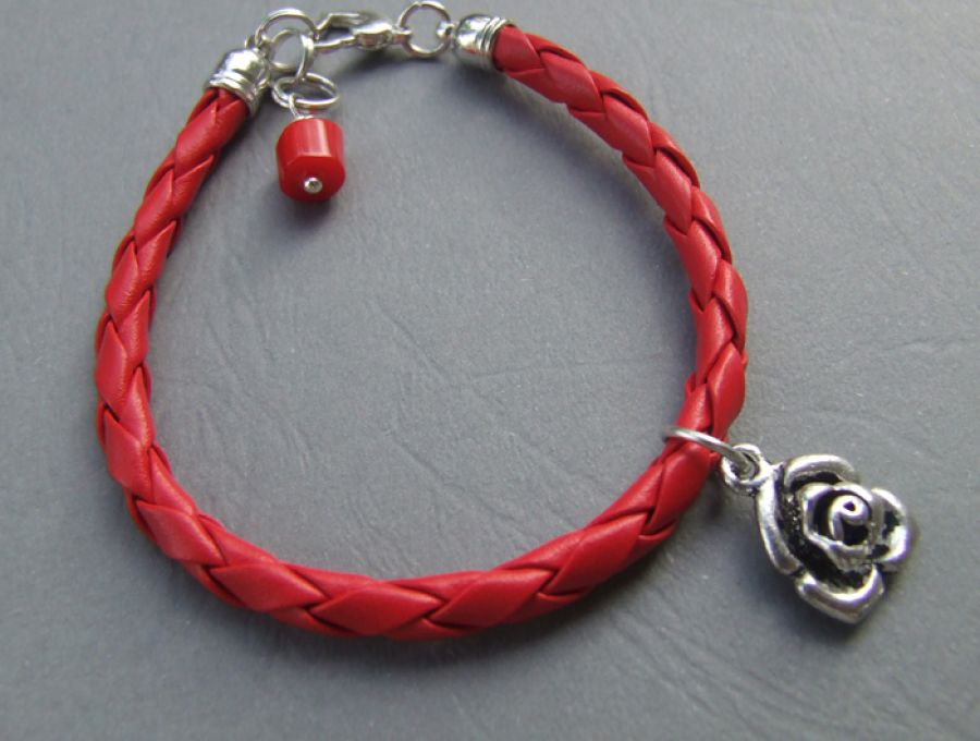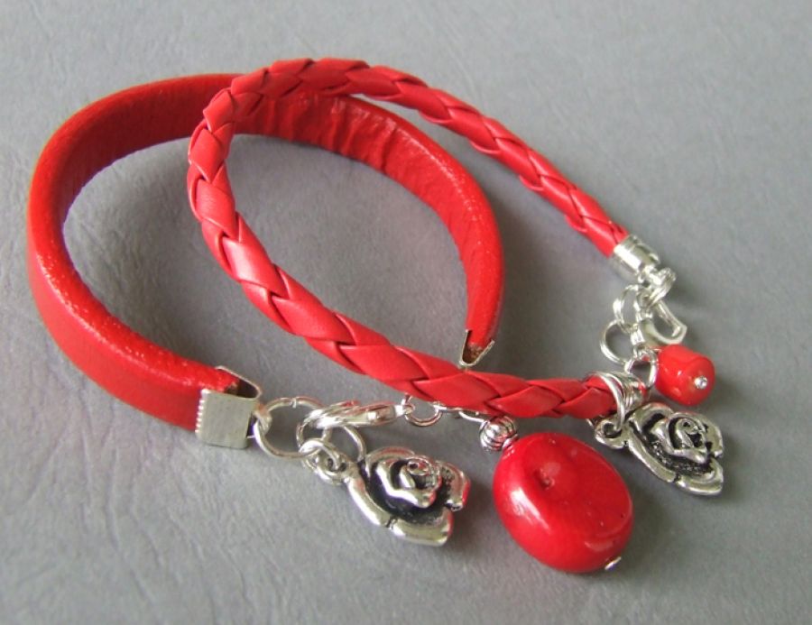 jedna bransoletka ze rzemienia -czerwona z różą.