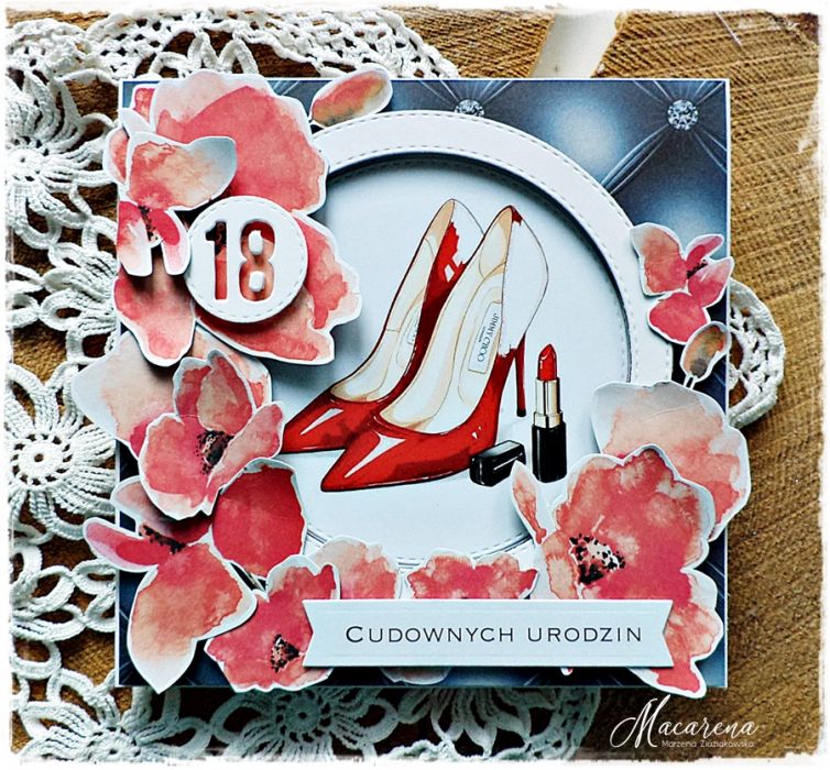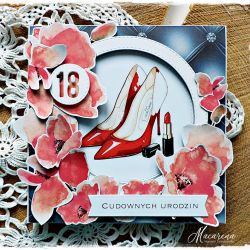 Kartka na 18-stkę dla miłośniczki czerwieni, oryginalna i wyjątkowa.
