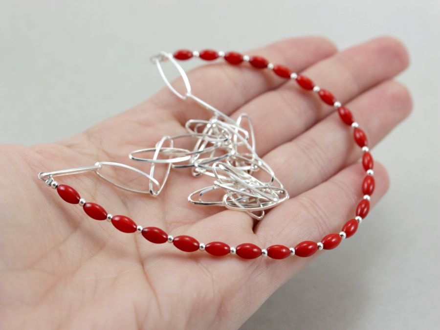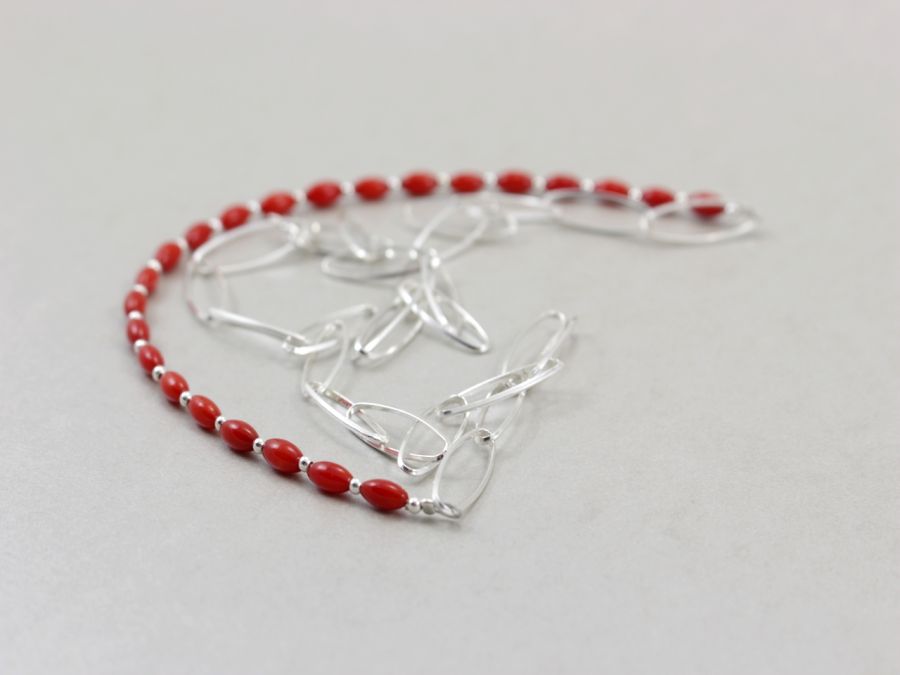 Nazwa produktu: Czerwony koral i srebro - naszyjnik łańcuszek