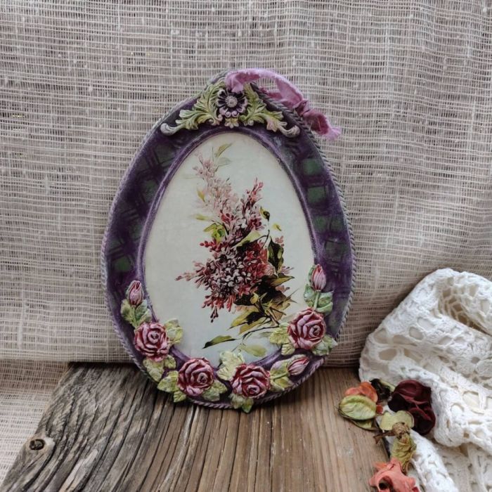 Wiosenna zawieszka wykonana w technice decoupage to prawdziwa uczta dla oczu. Jej głównym motywem są piękne fioletowe kwiaty, które emanują świeżością i radością nadchodzącej pory roku. Każdy detal został starannie wykonany, a delikatne cieniowania dodają głębi i lekkości, sprawiając, że kwiaty wydają się niemal trójwymiarowe.