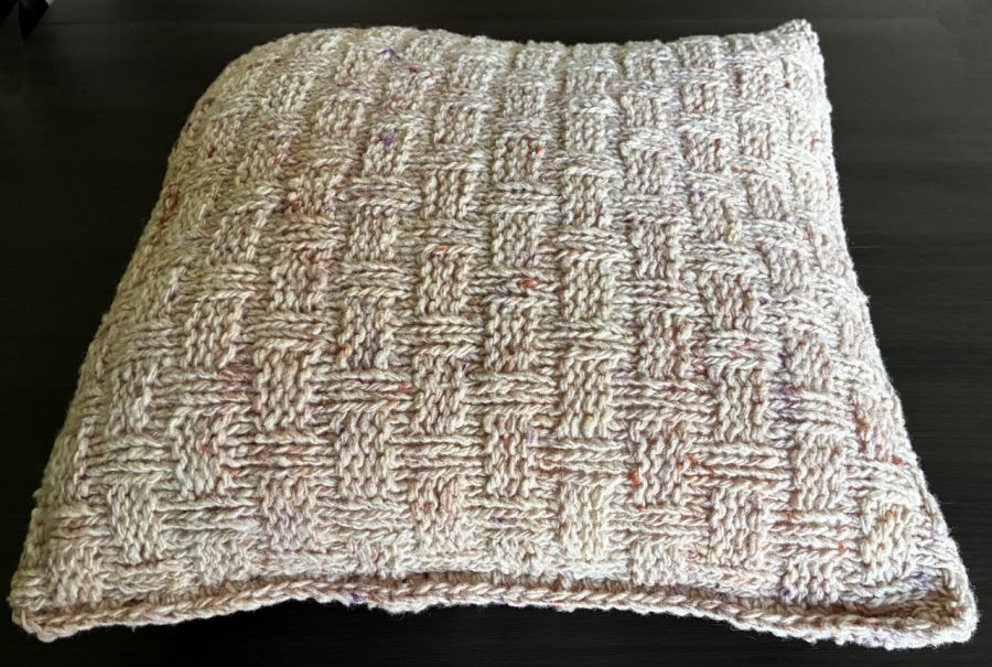 Zadaj pytanie dotyczące produktu: Dekoracyjna poduszka robiona na drutach z owczej wełny.