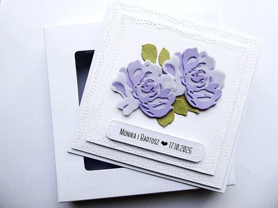 Zadaj pytanie dotyczące produktu: Delikatna kartka ślubna z różami handmade