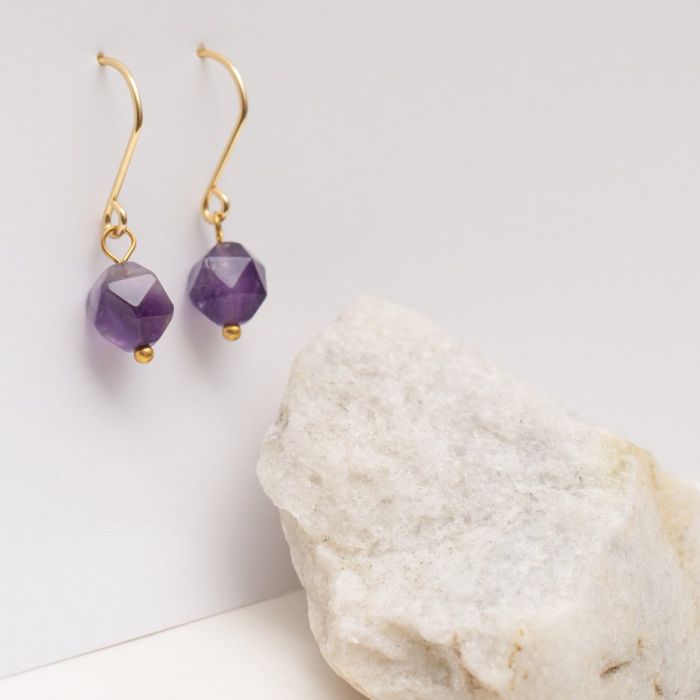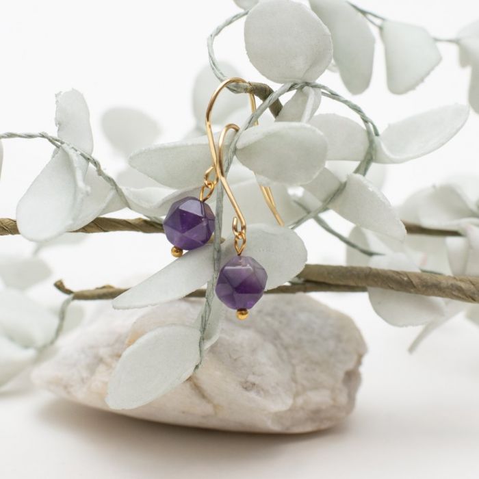 Nazwa produktu: DELIKATNE KOLCZYKI AMIRA POZŁACANE Z AMETYSTEM