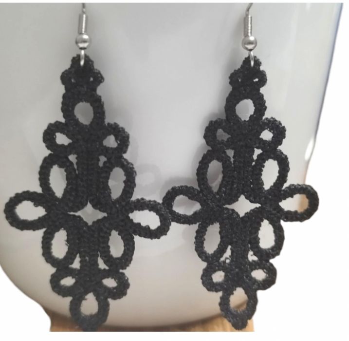 Czarne kolczyki z koronkowym haftem są delikatne i bardzo oryginalne. Z pewnością spodobają się kobietom ceniącym indywidualność oraz modne i nietuzinkowe stylizacje.