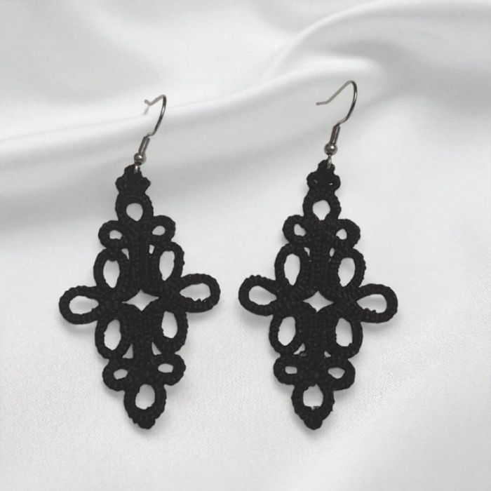 Zadaj pytanie dotyczące produktu: Delikatne koronkowe kolczyki haftowane - czarne