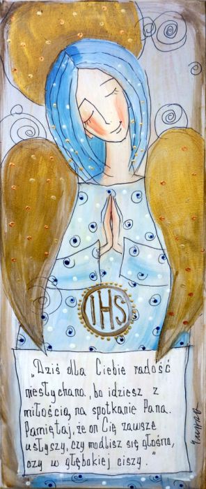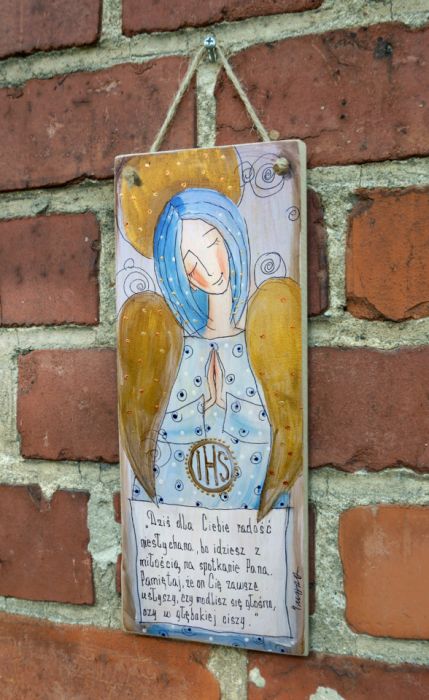Reprodukcja autorskiej pracy, umieszczona na płycie MDF o grubości 6 mm, z zawieszką w postaci ekologicznego sznurka.