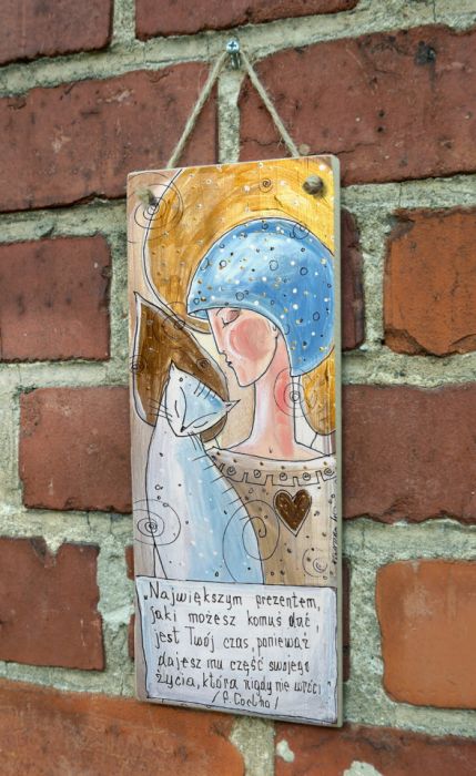 Reprodukcja autorskiej pracy, umieszczona na płycie MDF o grubości 6 mm, z zawieszką w postaci ekologicznego sznurka.