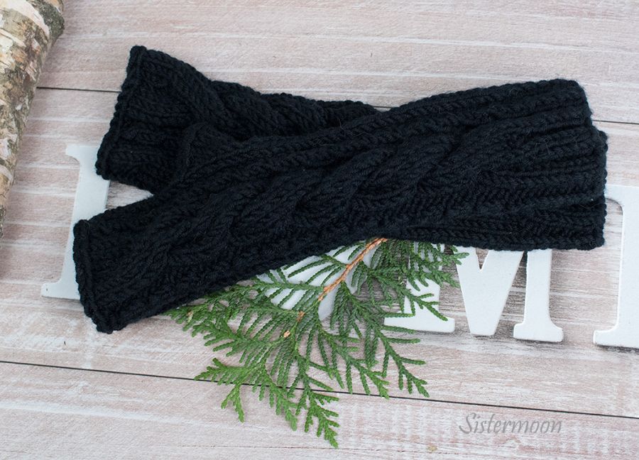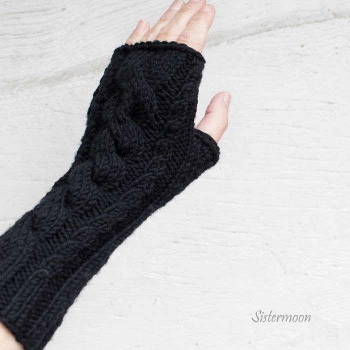 Nazwa produktu: Długie czarne mitenki merino z warkoczem