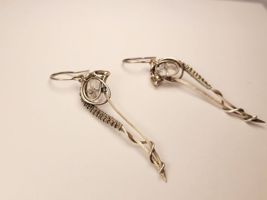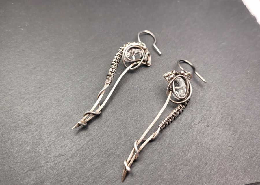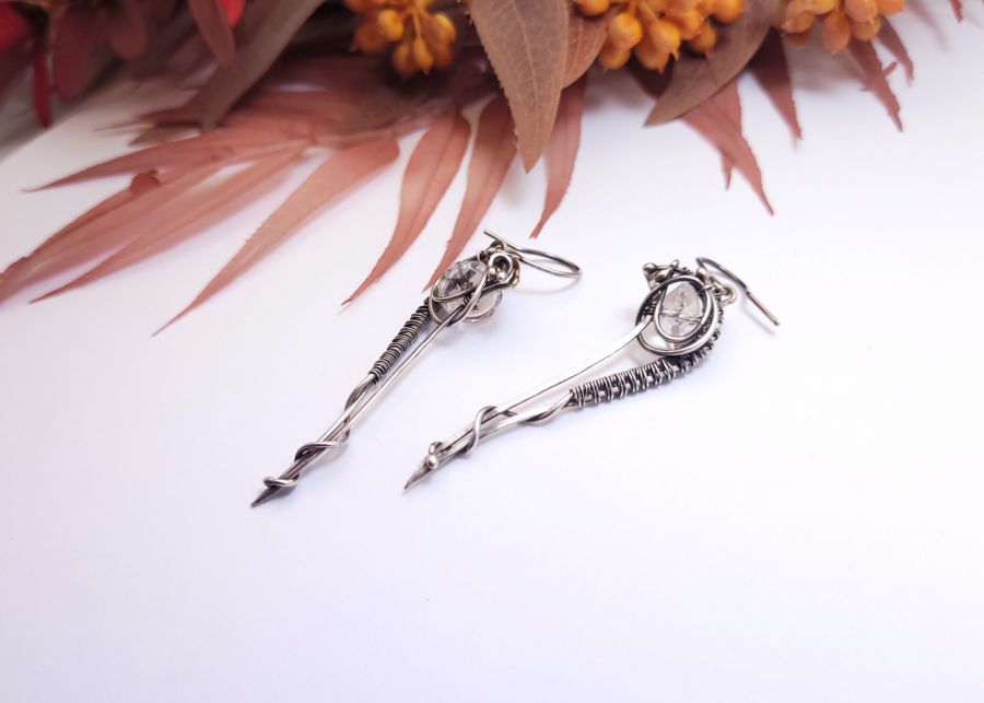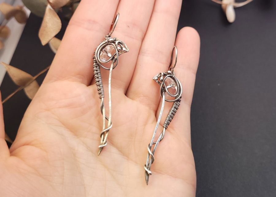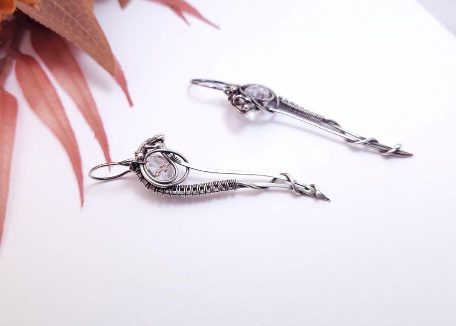 Biżuteria, która jest subtelna, ale jednocześnie przyciąga spojrzenia. Ręcznie wykonane ze srebra kolczyki mają smukłą, elegancką formę, która pięknie wydłuża szyję i dodaje stylizacji lekkości. W centrum znajduje się fasetowany kryształ górski, który delikatnie odbija światło – dzięki temu kolczyki subtelnie błyszczą przy każdym ruchu.