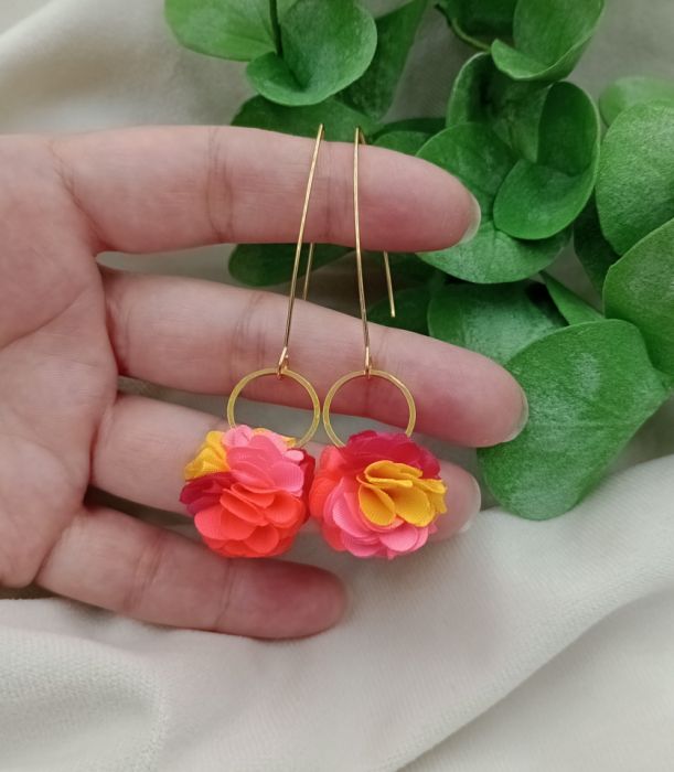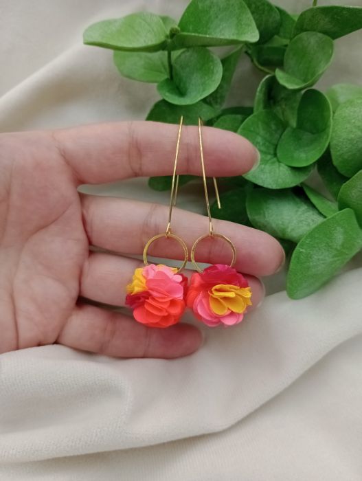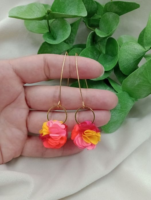 Kolczyki kwiatki wykonywane ręcznie z wiskozy w neonowym zestawieniu kolorów.