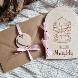 Drewniana kartka na urodziny dziecka - personalizowana.