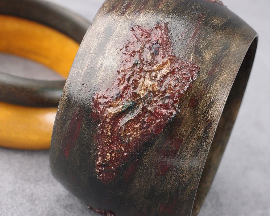 Serdecznie zapraszam do zakupu drewnianych bransoletek tworzonych według własnego pomysłu. Zdobione są delikatnie pastą strukturalną, malowane farbami akrylowymi i powleczone lakierem półmatowym. Gwarantuję, że drugiego takiego kompletu nie ma!