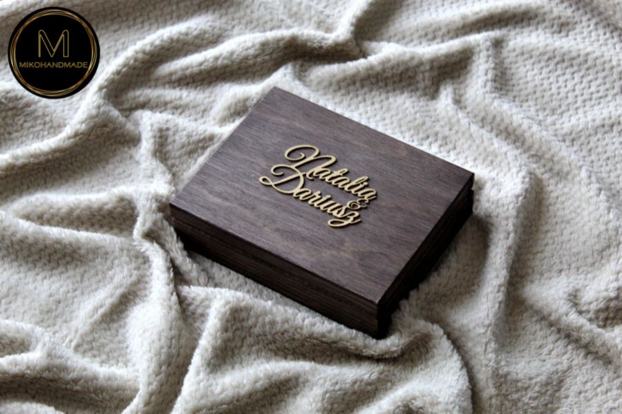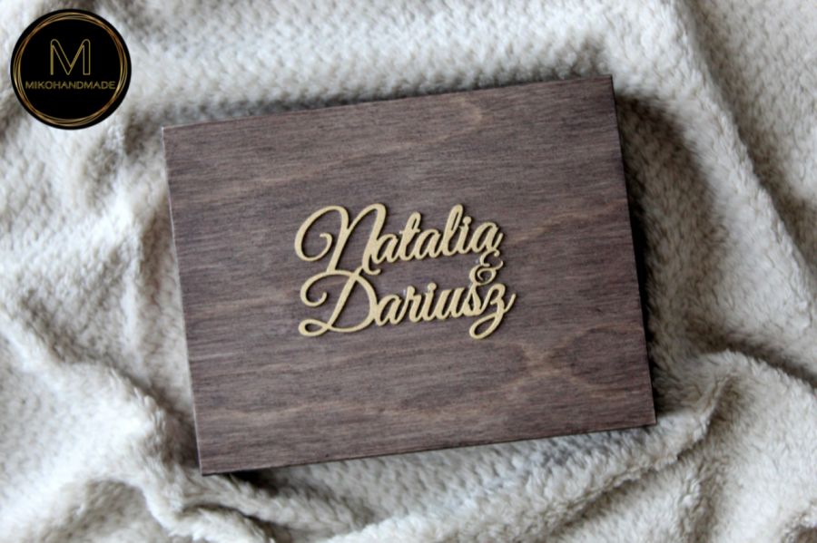 Zadaj pytanie dotyczące produktu: Drewniane pudełko na obrączki z imionami ślub