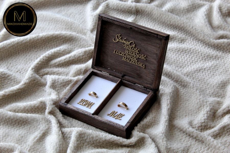 - Uniwersalne Zastosowanie: Pudełko zostało zaprojektowane tak, by podczas ceremonii bezpiecznie przechowywać dwa najważniejsze pierścionki – Wasze obrączki. Po ślubie stanie się elegancką szkatułką.