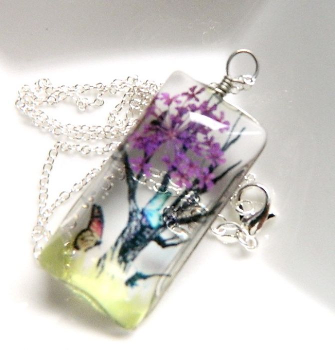 Nazwa produktu: Kwiaty zatopione w szkle, wisiorek na łańcuszku