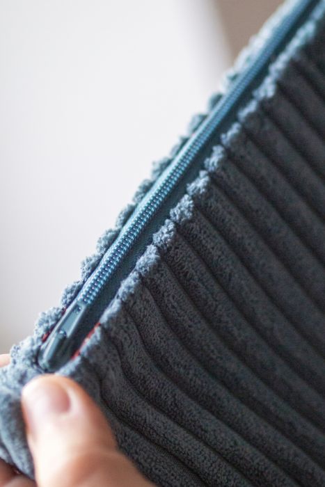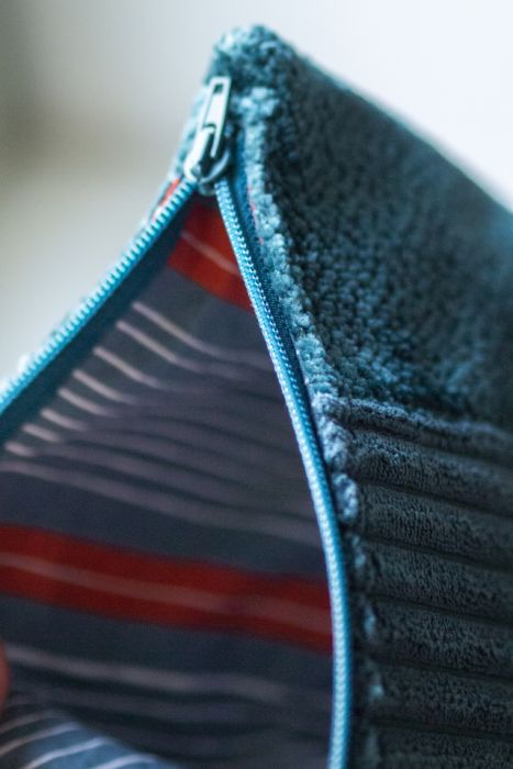 Kosmetyczka jest zapinana na suwak, w środku bawełniana podszewka.