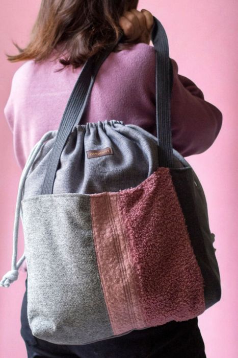 Nazwa produktu: Duża szaro-różowa torba z kominem patchwork