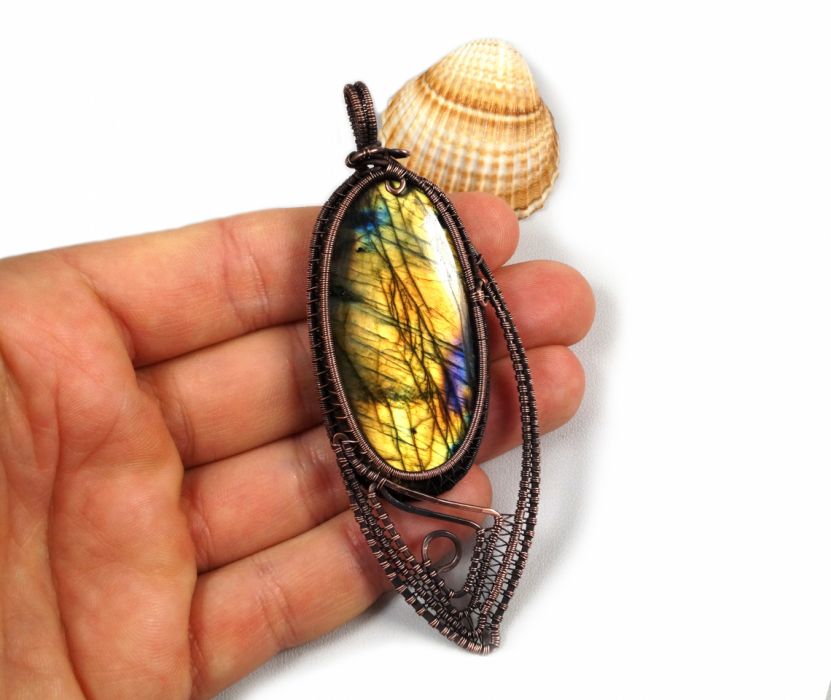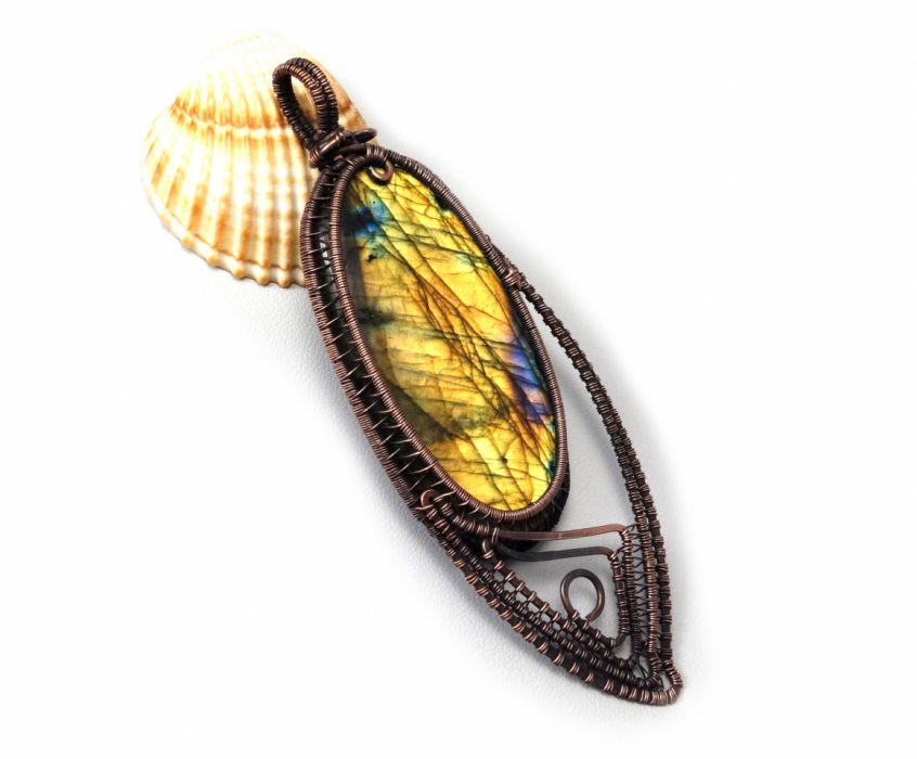 Zadaj pytanie dotyczące produktu: Duży wisior z labradorytem miedziany żółty