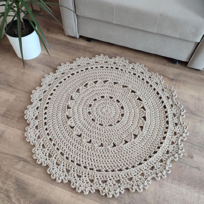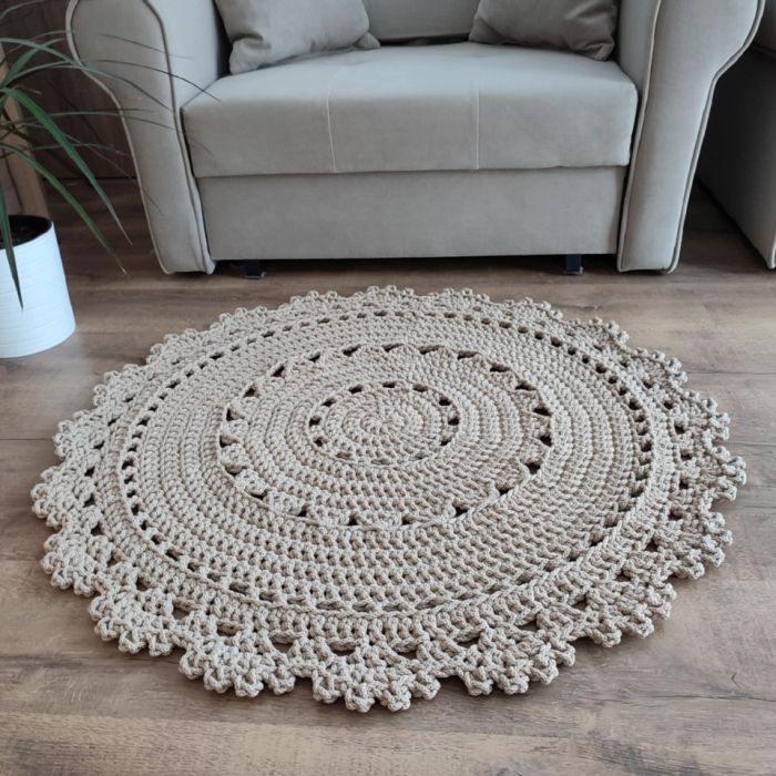 Zadaj pytanie dotyczące produktu: Dywan szydełkowy ze sznurka okrągły 90cm