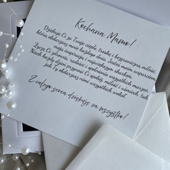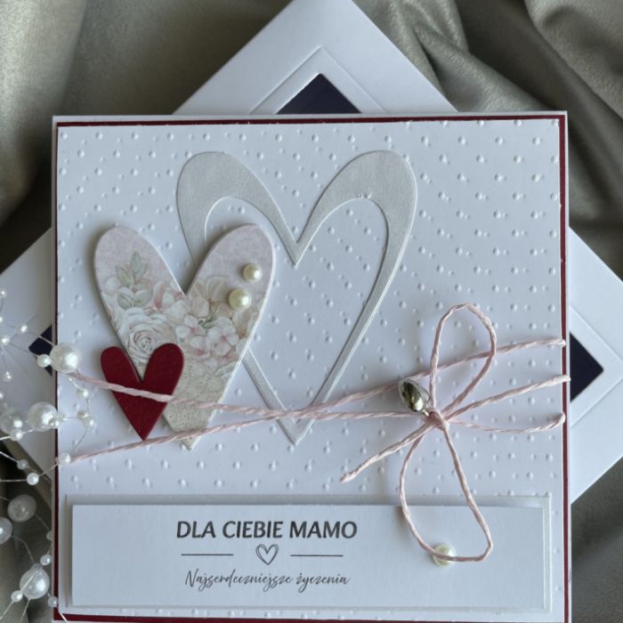 Wyjątkowa, ręcznie wykonana kartka stworzona specjalnie z myślą o Dniu Matki — pełna delikatności, elegancji i kobiecego uroku. To piękny sposób, aby wyrazić miłość, wdzięczność i czułość wobec najważniejszej osoby w życiu. Harmonijna kolorystyka i staranne detale sprawiają, że kartka prezentuje się gustownie i ponadczasowo.