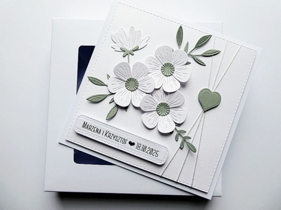 Ręcznie wykonana kartka ślubna, która urzeka elegancją połączoną z minimalizmem.