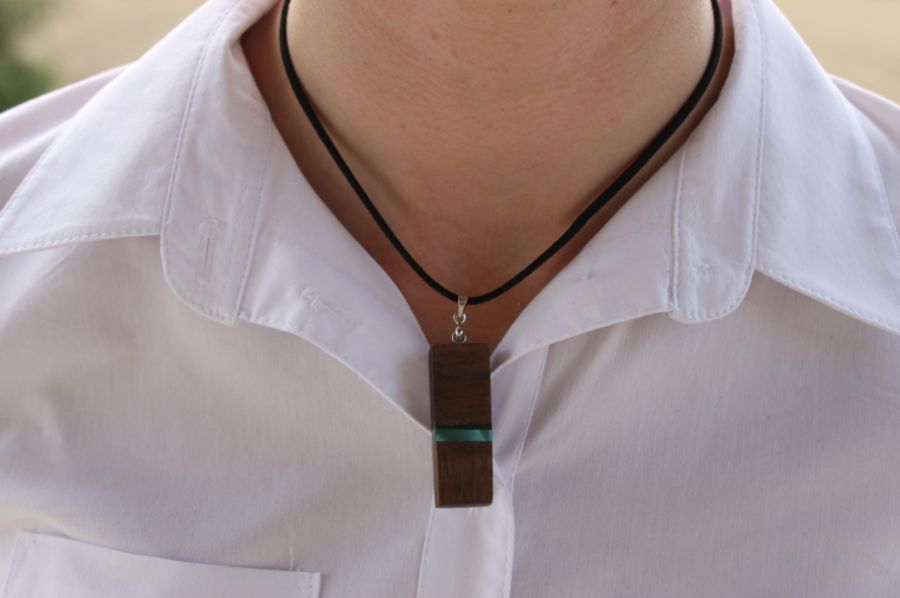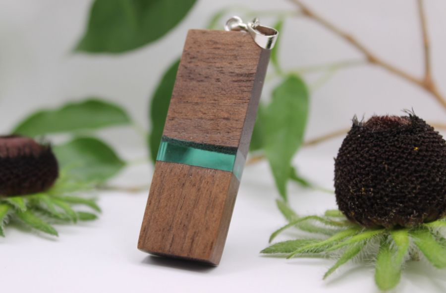 Wisiorek z orzecha amerykańskiego i żywicy epoksydowej