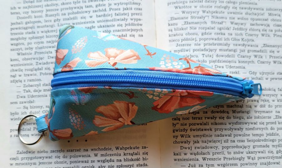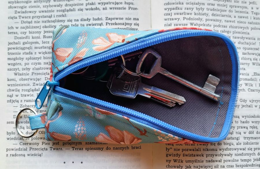 Praktyczne etui na klucze o oryginalnym kształcie wykonane w malutkiej polskiej pracowni. Praktyczny format 15x9 cm zmieści klucze oraz niewielki breloczek. Wykonane z tkaniny wodoodpornej z kwiatowym motywem. Wewnątrz gruba podszewka pełniąca funkcję delikatnego usztywnienia. Kółeczko do przypięcia kluczy wewnątrz oraz na zewnątrz.