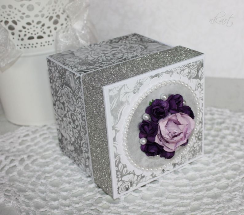 Pudełko wykonane ręcznie metodą Scrapbookingu z najwyższej jakości materiałów, starannie dobranych dodatków oraz skomponowane z największą dokładnością :)
