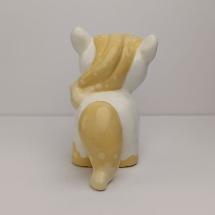 Ręcznie wykonana figurka to element dekoracyjny podatny na uszkodzenia mechaniczne. Wykonana jest z gipsu ceramicznego, pełna w środku. Pokryta jest kilkoma warstwami lakieru, które chronią ją przed drobnymi uszkodzeniami, zabrudzeniami i wilgocią. Czyszczenie z kurzu najlepiej wykonać miękkim pędzelkiem.