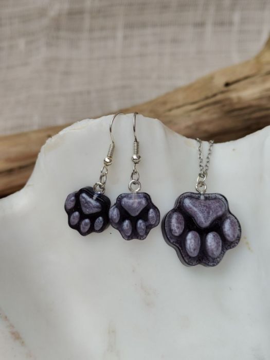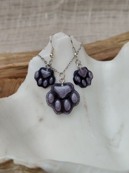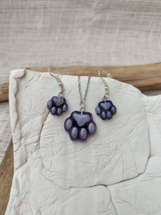 Nazwa produktu: Fioletowa Łapka – komplet biżuterii z motywem psiej łapy