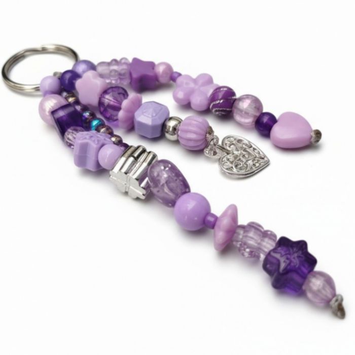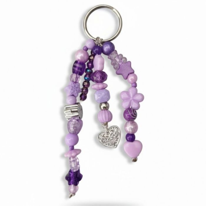 Breloczek w pastelowych fioletowych kolorach dla dziewczynki. Idealny do plecaka, torebki lub kluczy.