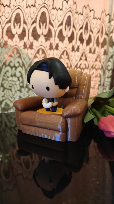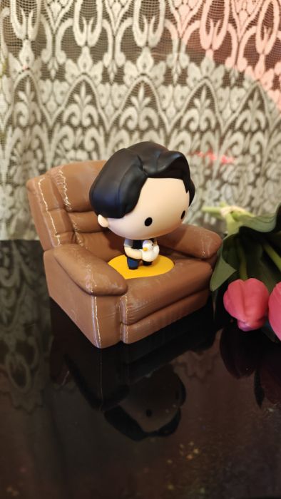 Ten miniaturowy fotel to dekoracyjny ekspozytor inspirowany słynnymi fotelami, na których dwójka przyjaciół spędzała niezliczone wieczory przed telewizorem. Stworzony w mojej pracowni w technice druku 3D, łączy w sobie lekkość nowoczesnego materiału i rękodzielnicze wykończenie, dzięki czemu każdy egzemplarz ma swój własny charakter.