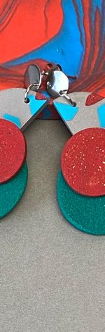 Kolorowe kolczyki z glinki polimerowej, w nowoczesnym, geometrycznym kształcie.