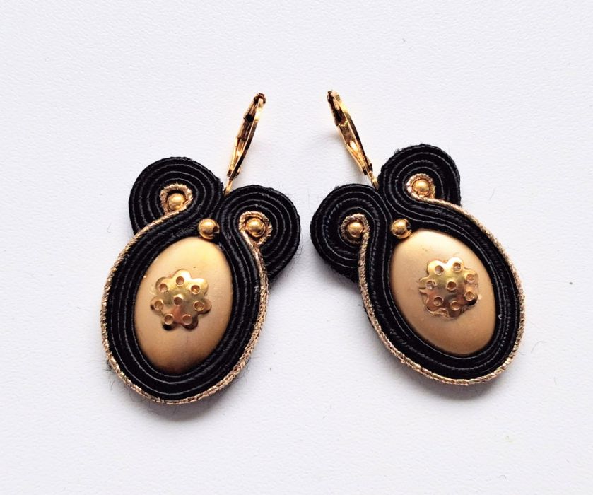 Kolczyki wykonane w modnej technice haftu sutaszowego. Jest ona pracochłonna, ale daje piękne efekty.