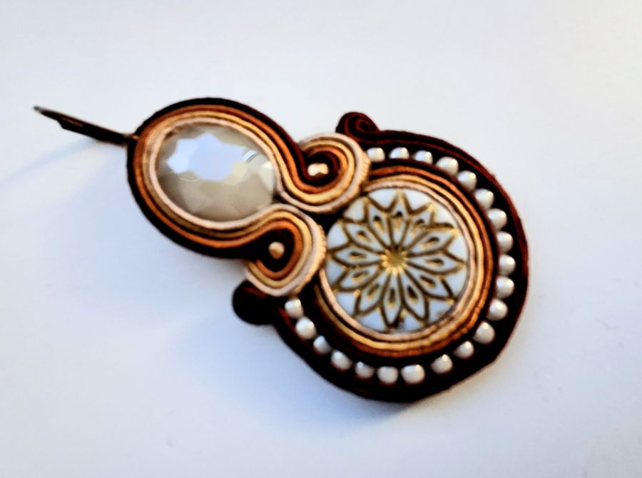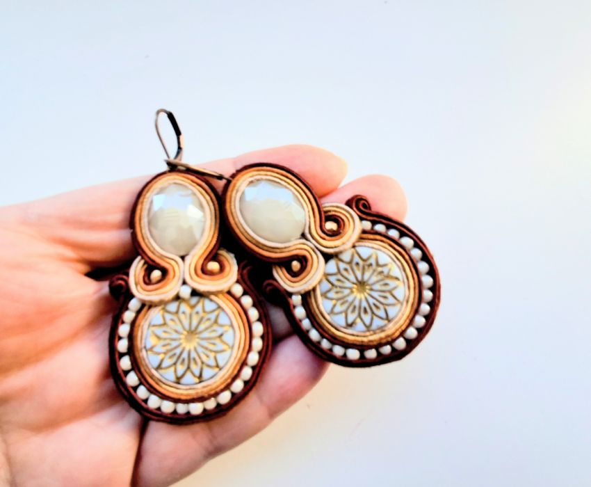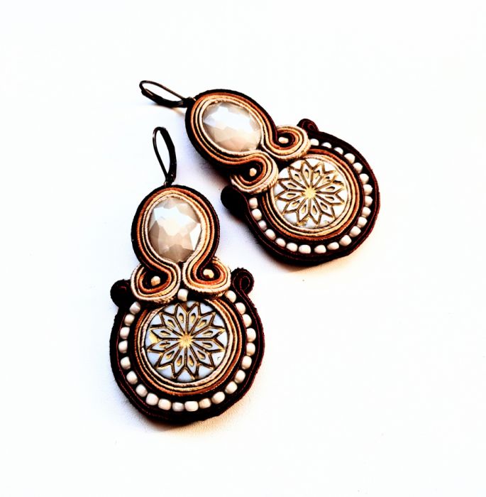 Kolczyki wykonane w modnej technice haftu sutaszowego. Jest ona pracochłonna, ale daje piękne efekty.