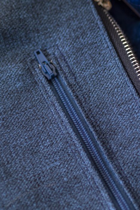 Prosta torebka, kopertówka w średnim rozmiarze wykonana z tkaniny w kolorze granatowym. Zapinana na suwak.