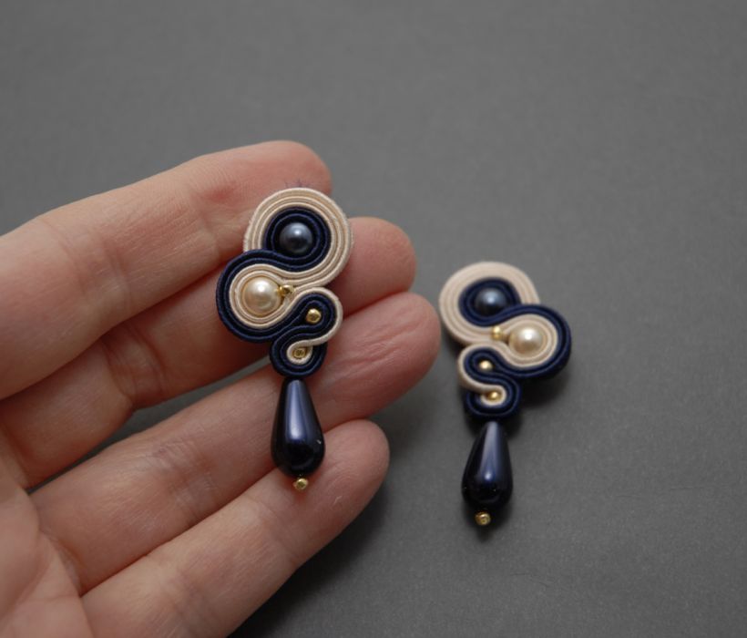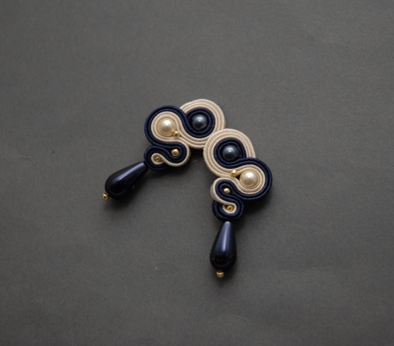 Nazwa produktu: granatowo-kremowe kolczyki lub klipsy sutasz