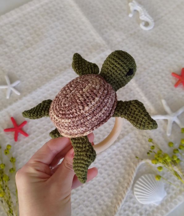 Szydełkowana grzechotka z żółwikiem to idealna pierwsza zabawka dla Twojego maluszka!