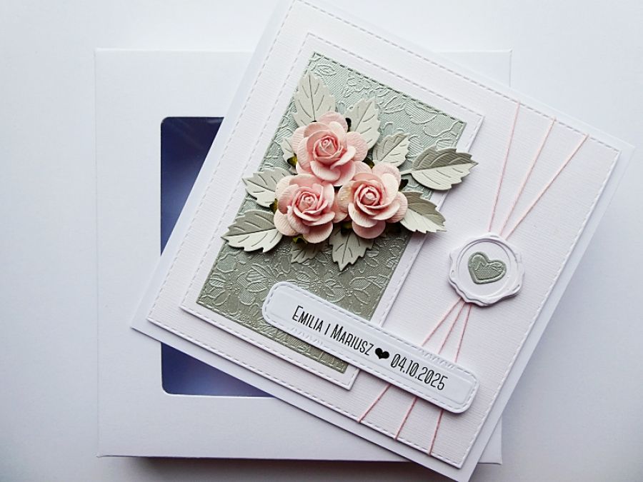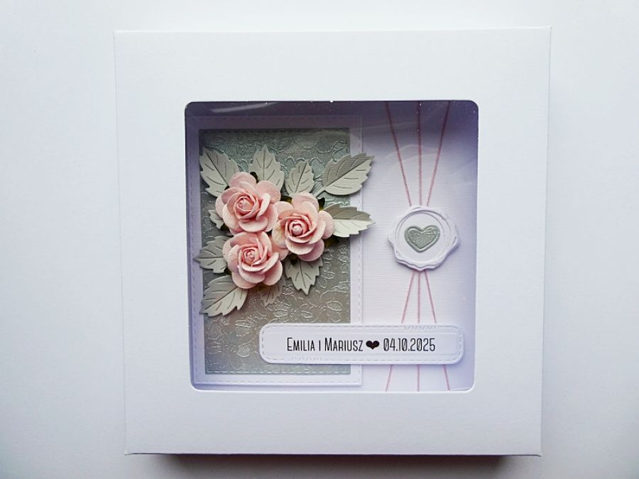 Cudny zestaw: pudełeczko, w którym jest kartka okolicznościowa i kopertka na pieniądze. Niezwykle starannie wykonane, estetyczne i eleganckie. Jestem bardzo zadowolona z zakupu!