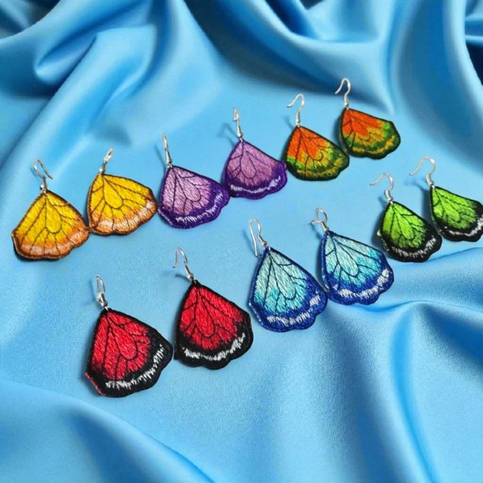 Nazwa produktu: Kolczyki haftowane skrzydła motyla pomarańczowo zielone