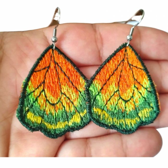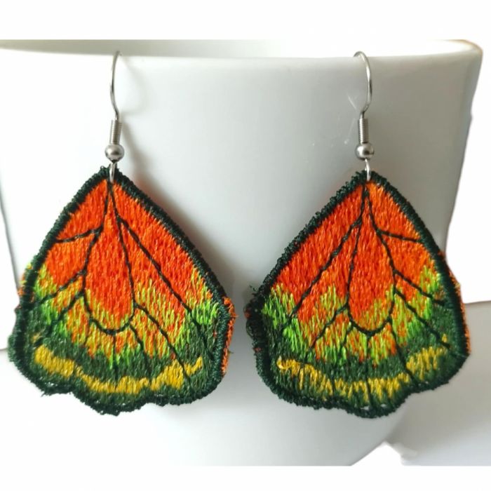 Nazwa produktu: Kolczyki haftowane skrzydła motyla pomarańczowo zielone