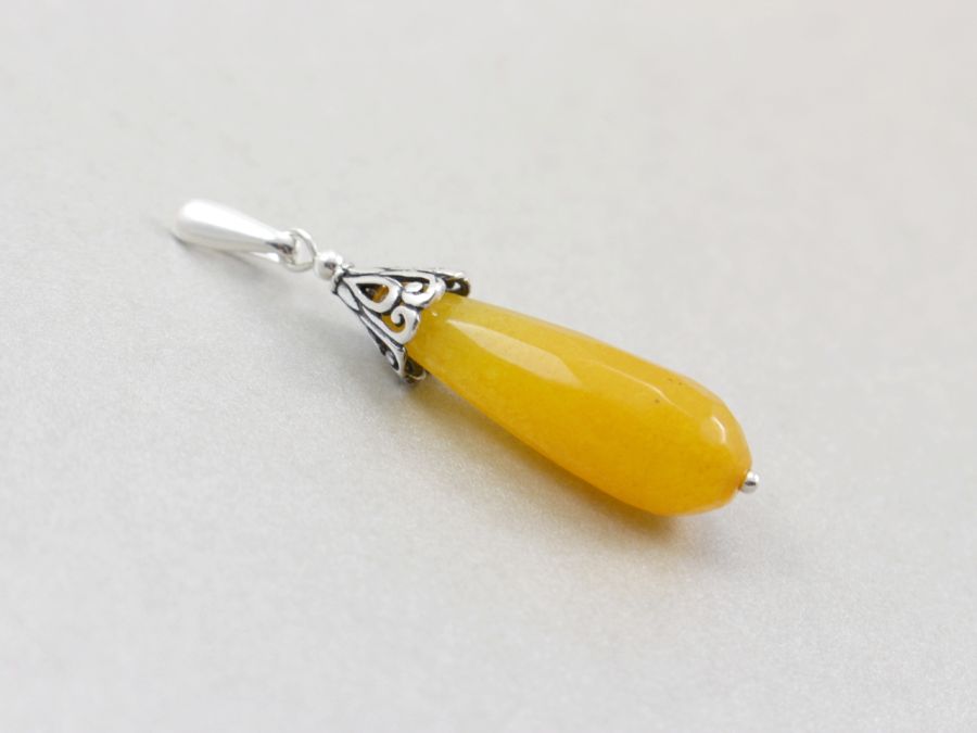 Przedstawiam Państwu piękny wisiorek wykonany z fasetowanego jadeitu w kształcie kropli oraz srebra próby 925. Jadeit wielkości ok. 30x10 mm ozdobiliśmy oksydowaną