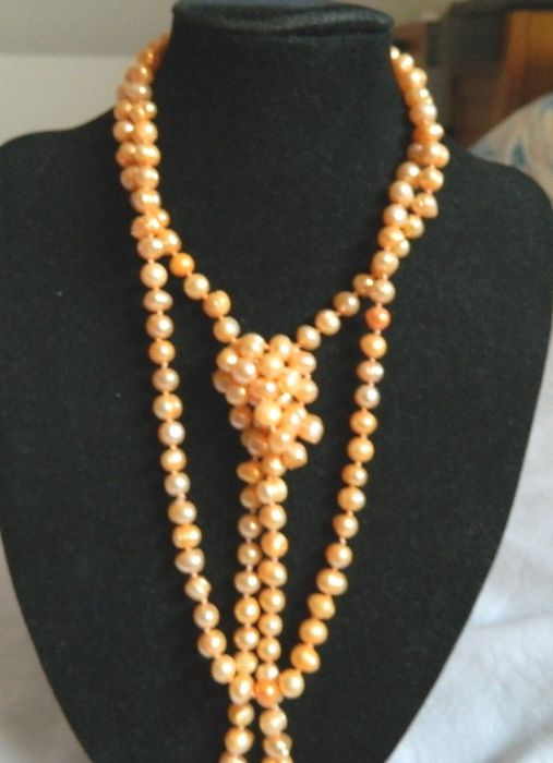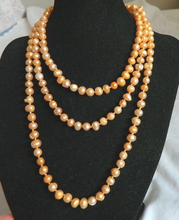 Zadaj pytanie dotyczące produktu: Jasno pomarańczowe perły naturalne, długi naszyjnik, sznur pereł